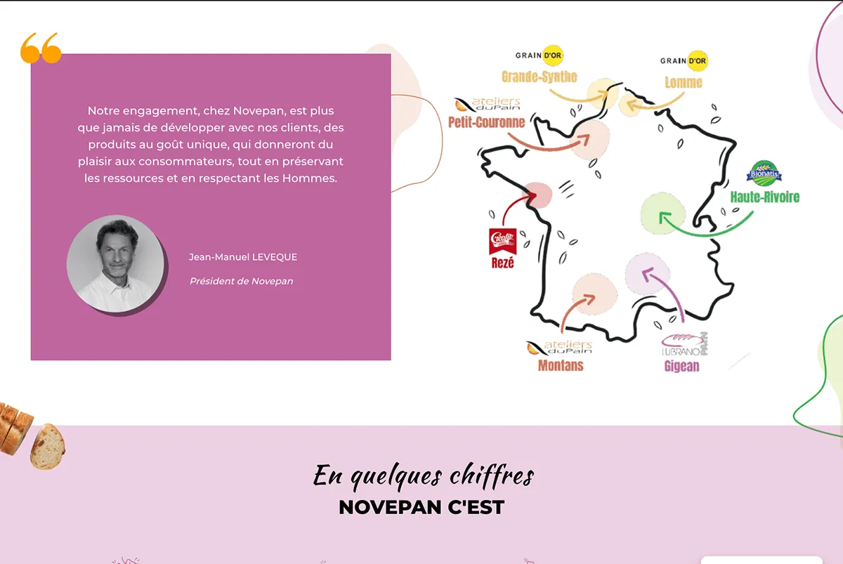 Novepan conçoit, fabrique et commercialise des produits de boulangerie signature à destination des professionnels de la restauration et de la distribution. L’entreprise met en avant un savoir-faire de plus de 80 ans, réparti sur six sites de production et soutenu par 350 collaborateurs.