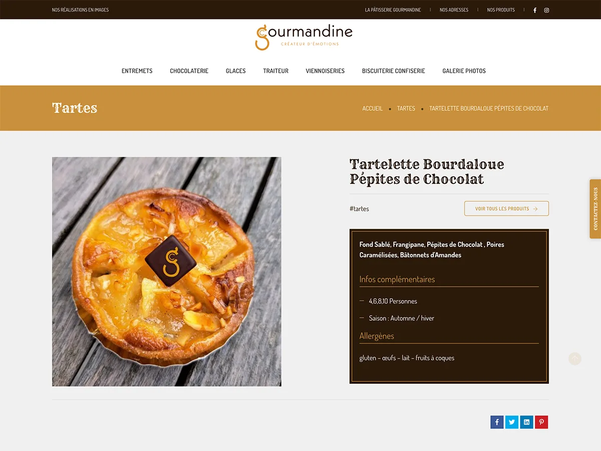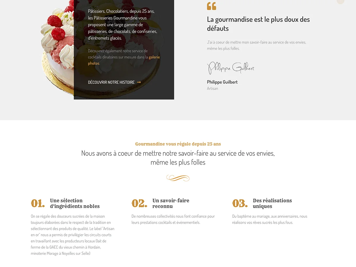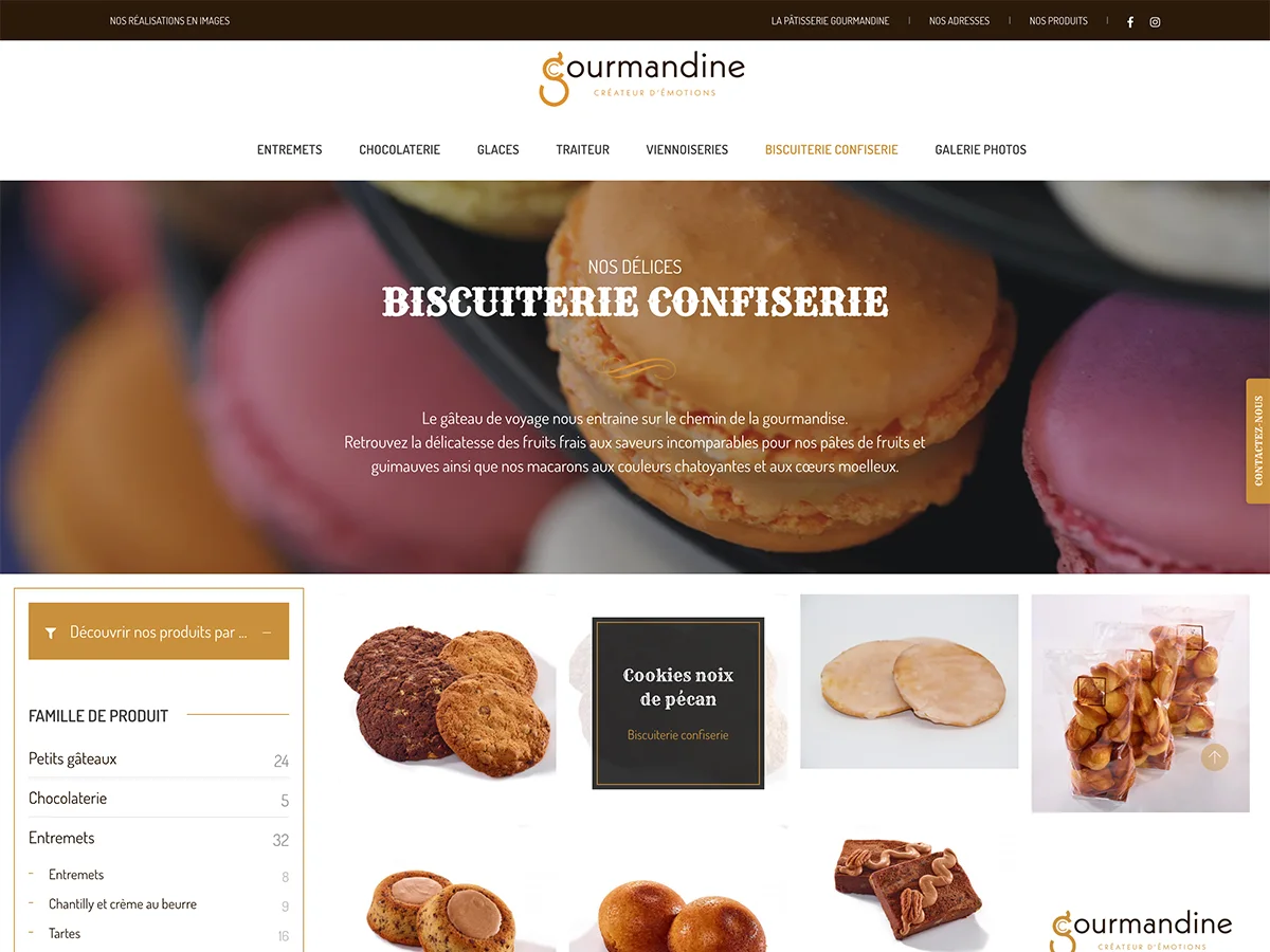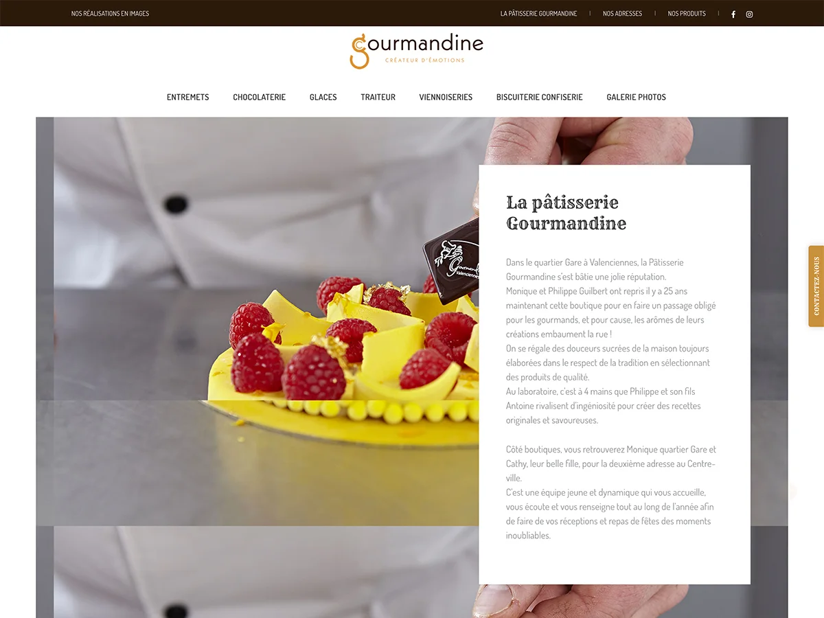 Ancrée à Valenciennes, la pâtisserie Gourmandine souhaitait valoriser son savoir-faire artisanal à travers un site vitrine élégant et chaleureux, à l’image de ses créations. Le projet visait à mettre en avant une large galerie de réalisations pâtissières, tout en offrant la possibilité aux visiteurs de télécharger le catalogue de produits mis à jour à chaque saison festive.